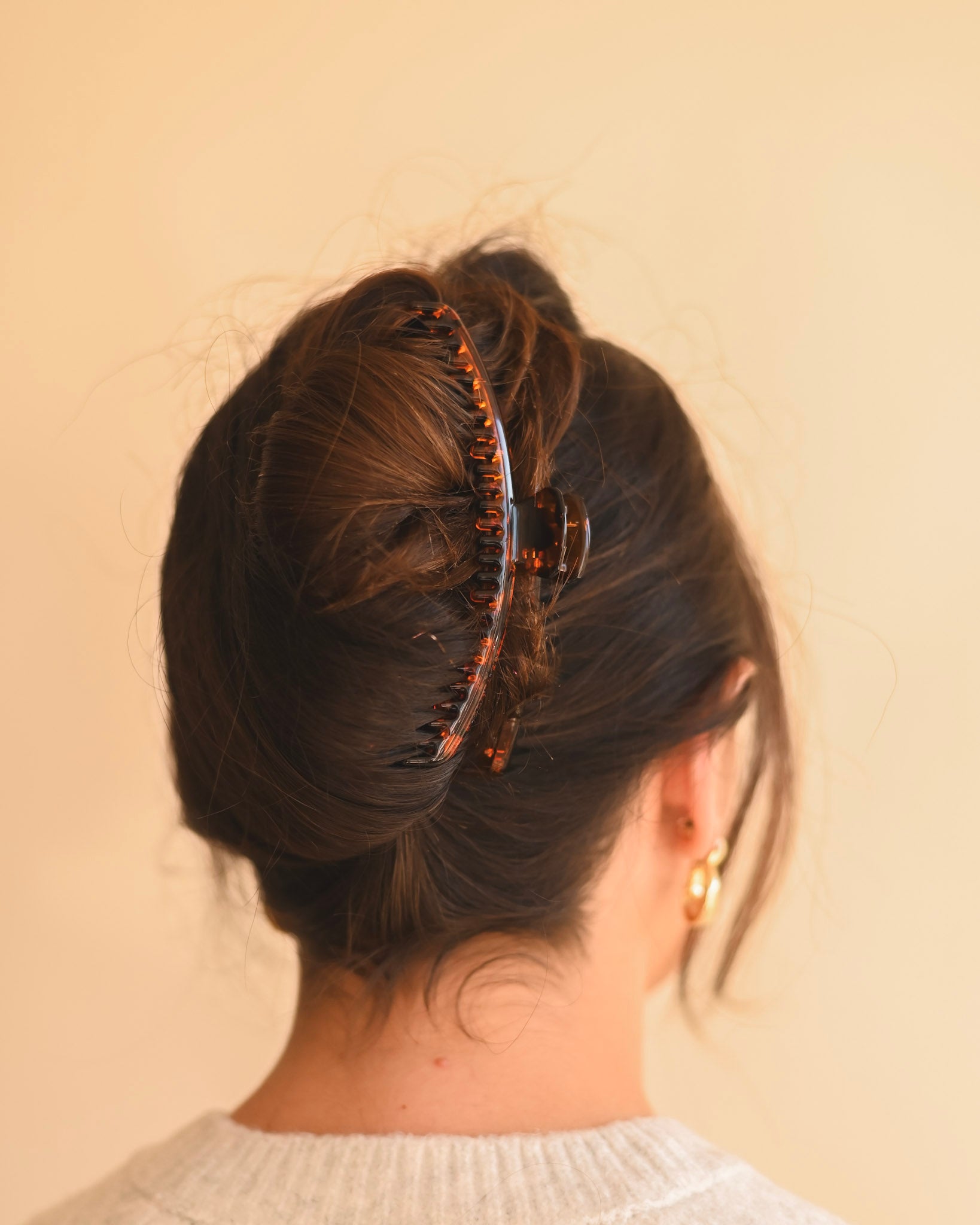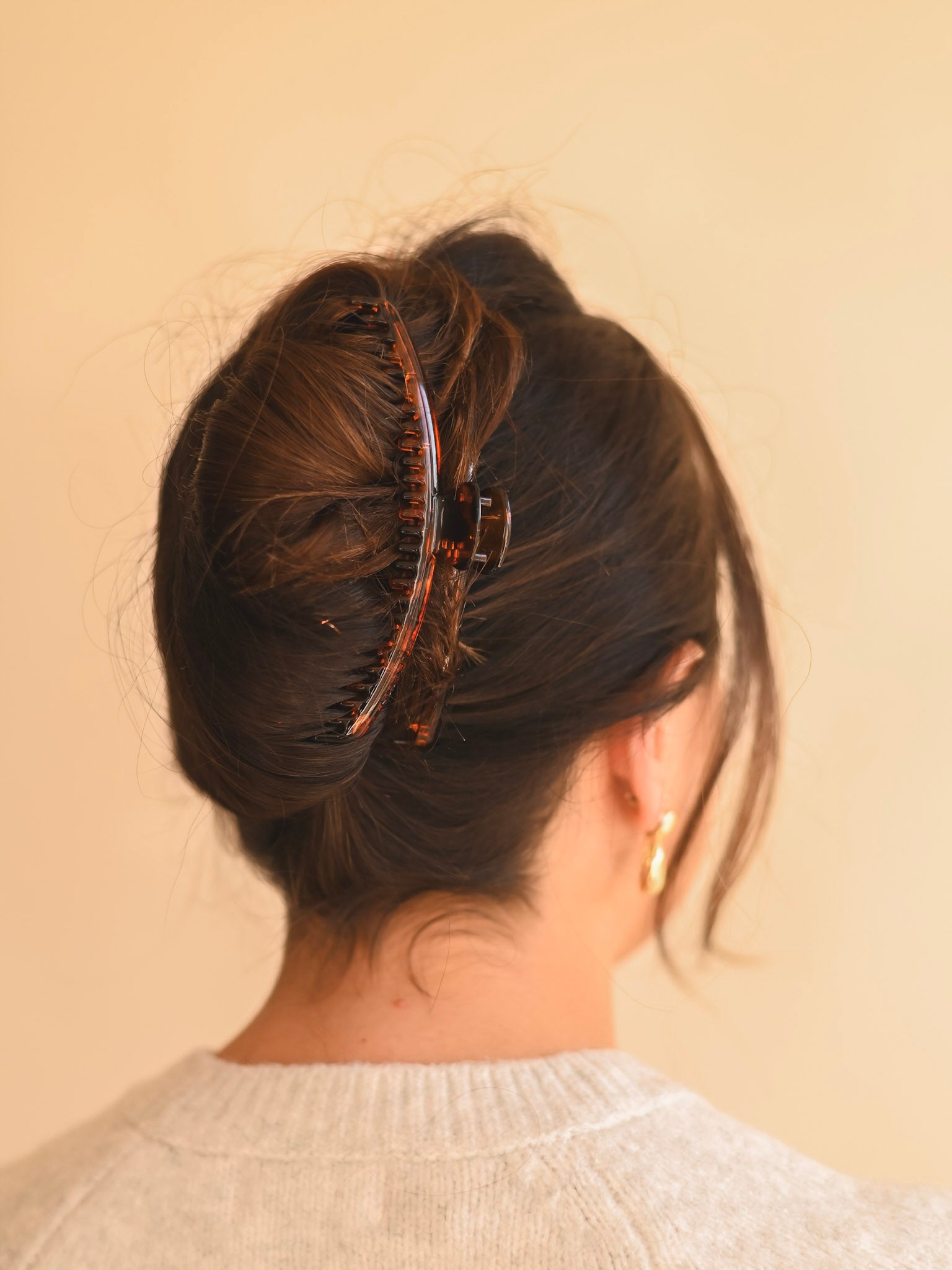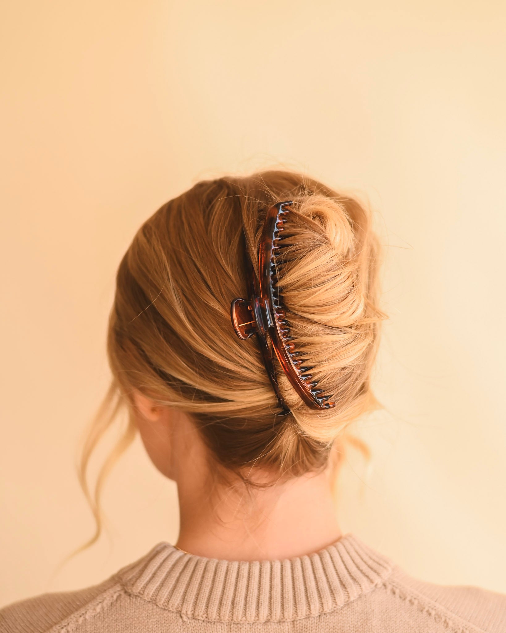 The Mega Hold Clip is designed to keep your hair secure and comfortable from morning to night — without tugging, slipping, or causing damage. Its durable structure and curved shape make it ideal for everything from busy workdays to lounging or driving, all while staying comfortably in place.