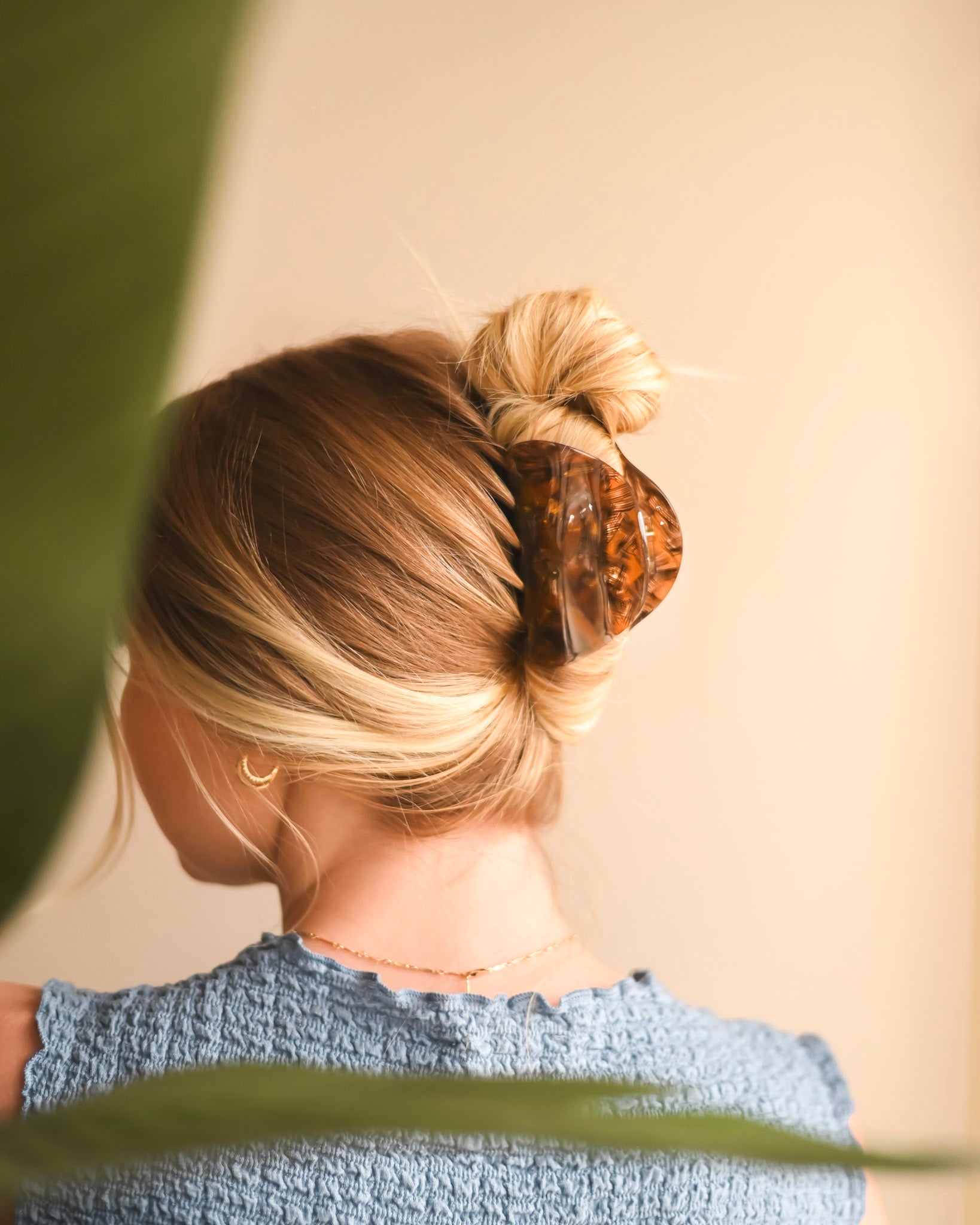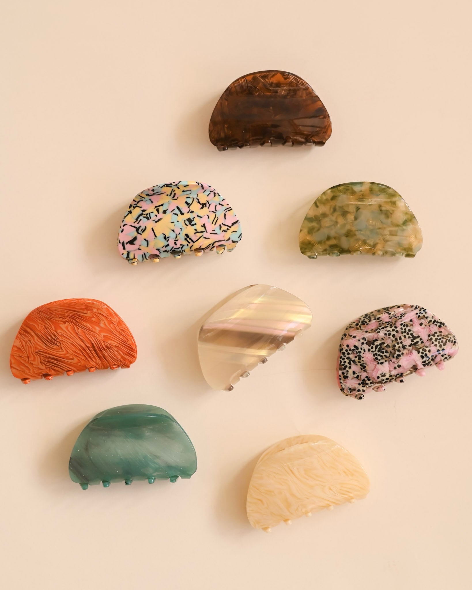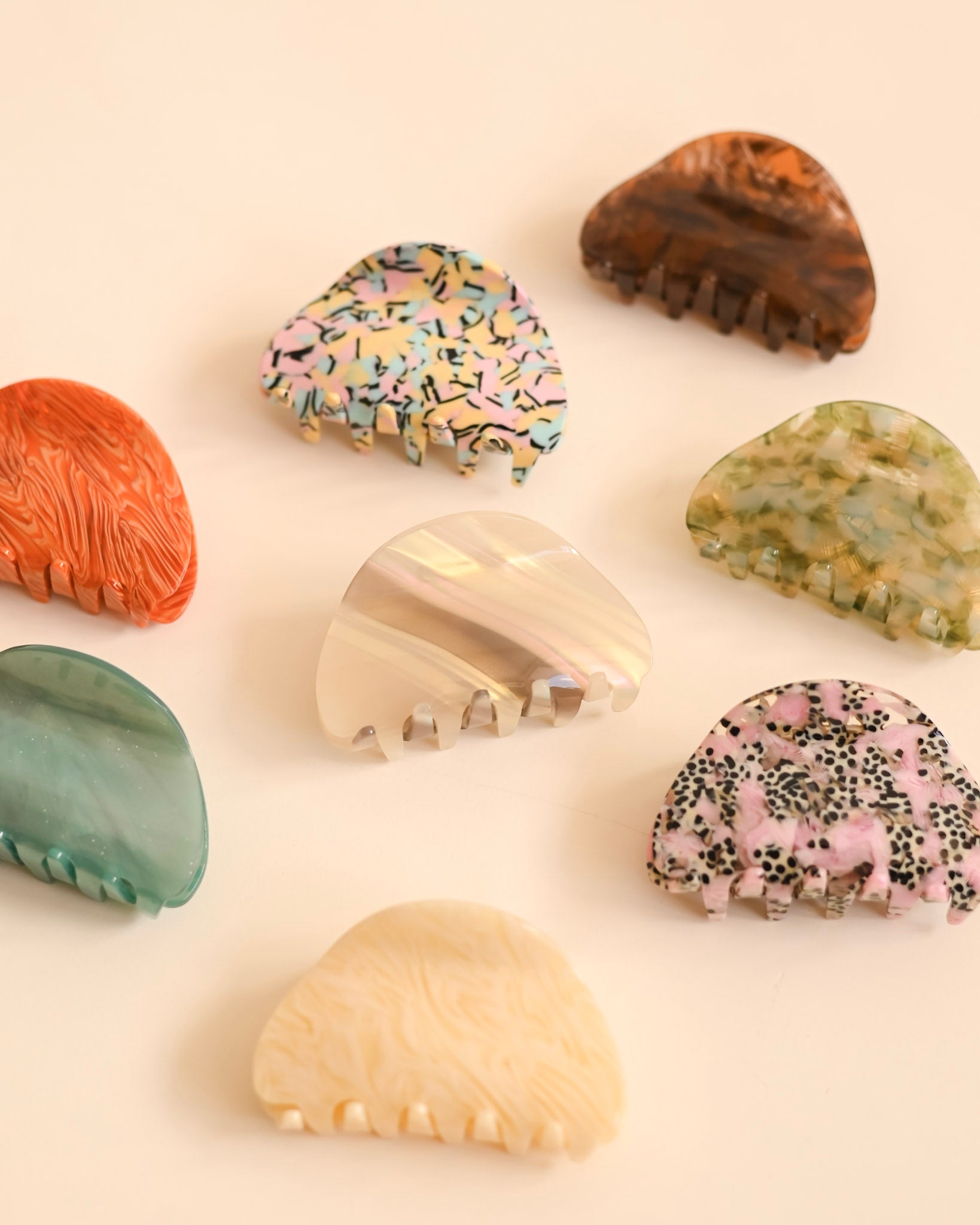 One of the best clips to ever do it! Available in 8 uniquely beautiful patterns, there's a color and print for any outfit or hair color. Our Aura claws are made with cellulose acetate, ensuring an ultra durable clip that'll last you years of cute hairstyles. Not to mention, they are eco-friendly unlike your typical plastic claw! We recommend our Aura claws for those with thin to semi thick hair and everything in between. Thanks to it's tight grip and strong spring - this clip can do exactly what you need it to do.