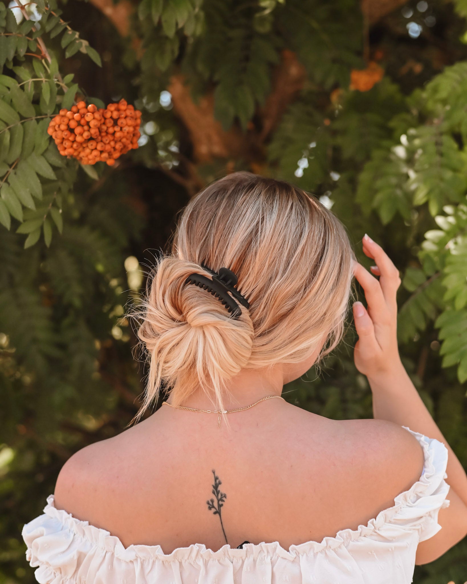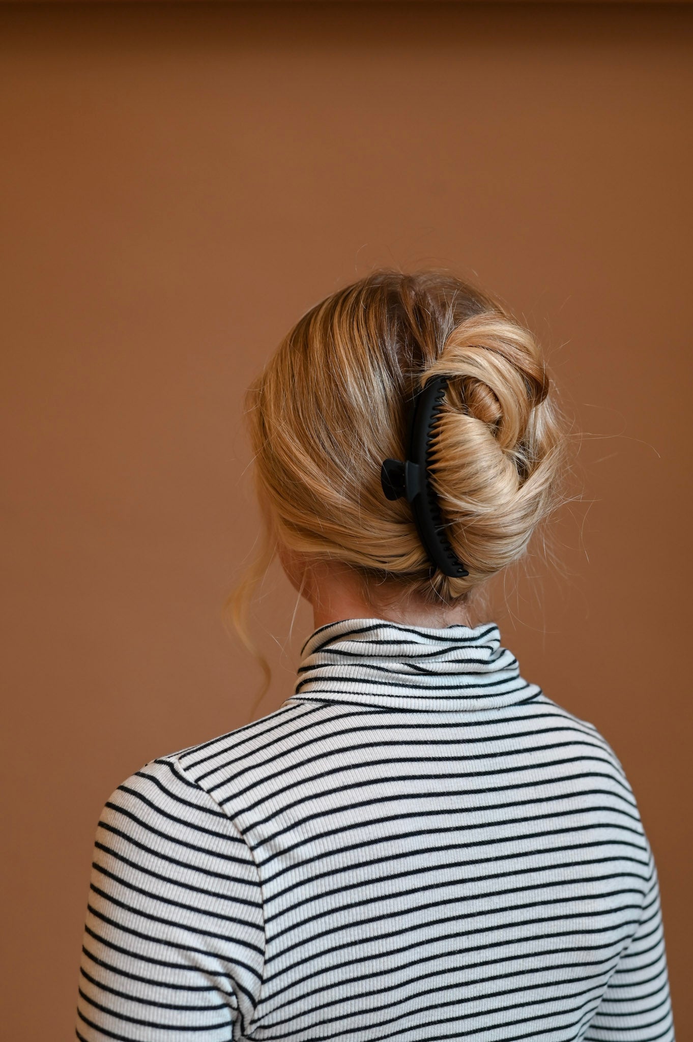 The Mega Hold Clip is a great go-to clip for every hair type, and works wonders at keeping hair in place all day long without causing damage. The structure and design of the Mega Hold allows for a comfortable fit through any activity, including laying down and driving! This clip is especially great for active occupations and hobbies. Our Black Mega Hold is a matte texture.