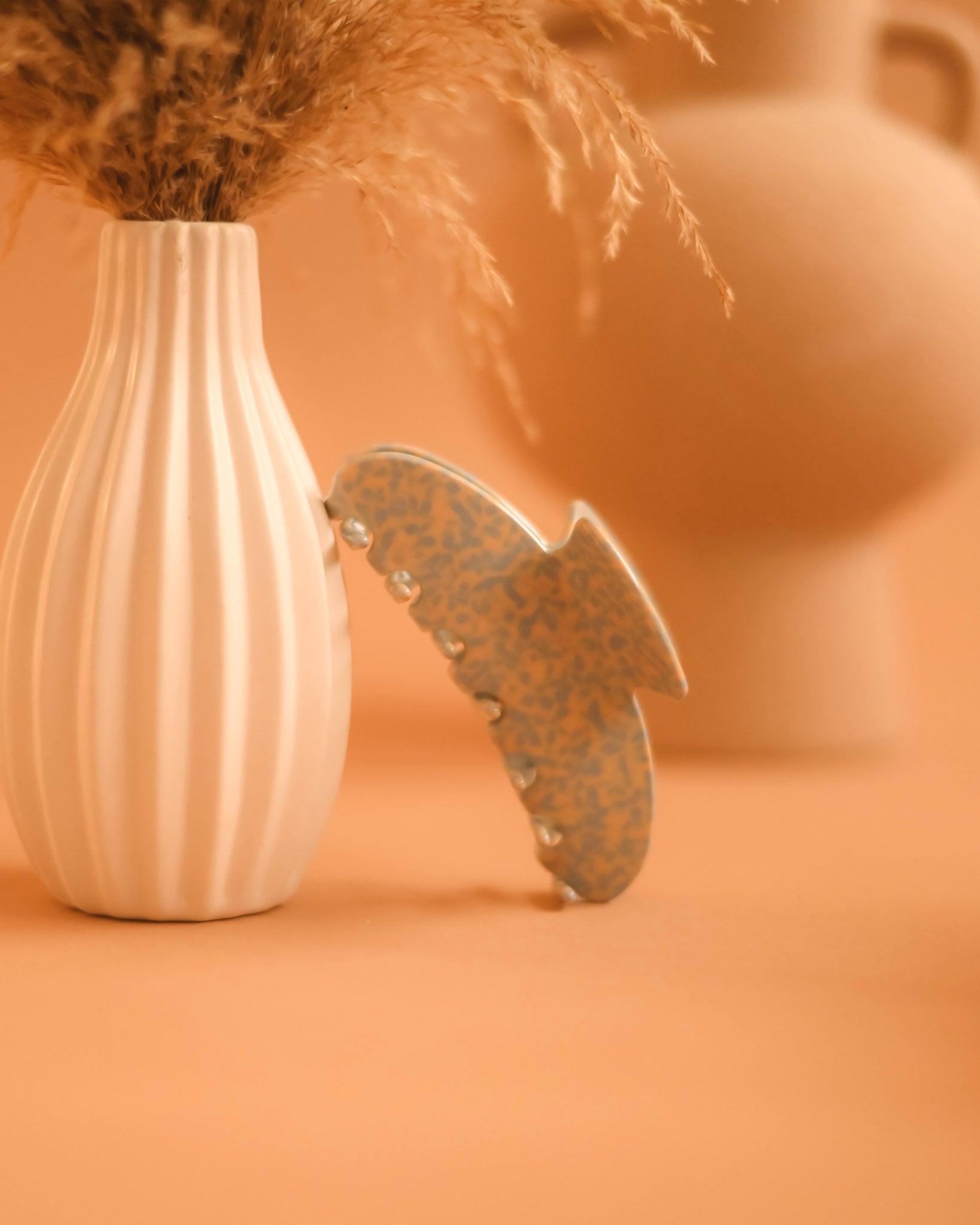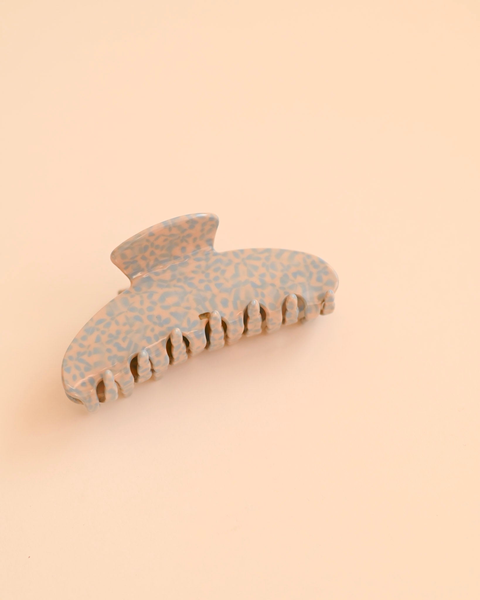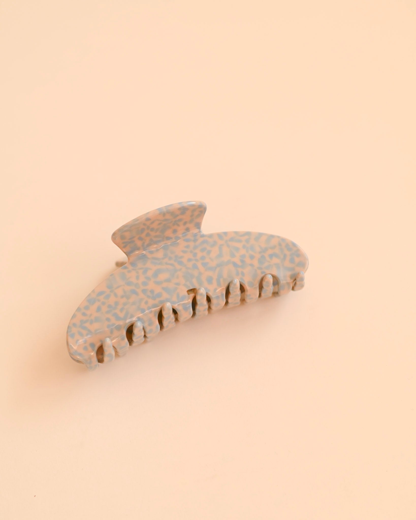 The Blueberries & Cream Thin Luxe Claw is a versatile and durable stable to add to your collection! Approximately 5 inches in length, this claw covers a generous amount of surface area, making it a great option to get all of your hair up - and ensure it stays up. This claw is made from cellulose acetate making it an eco-friendly choice in comparison to your standard plastic clip.