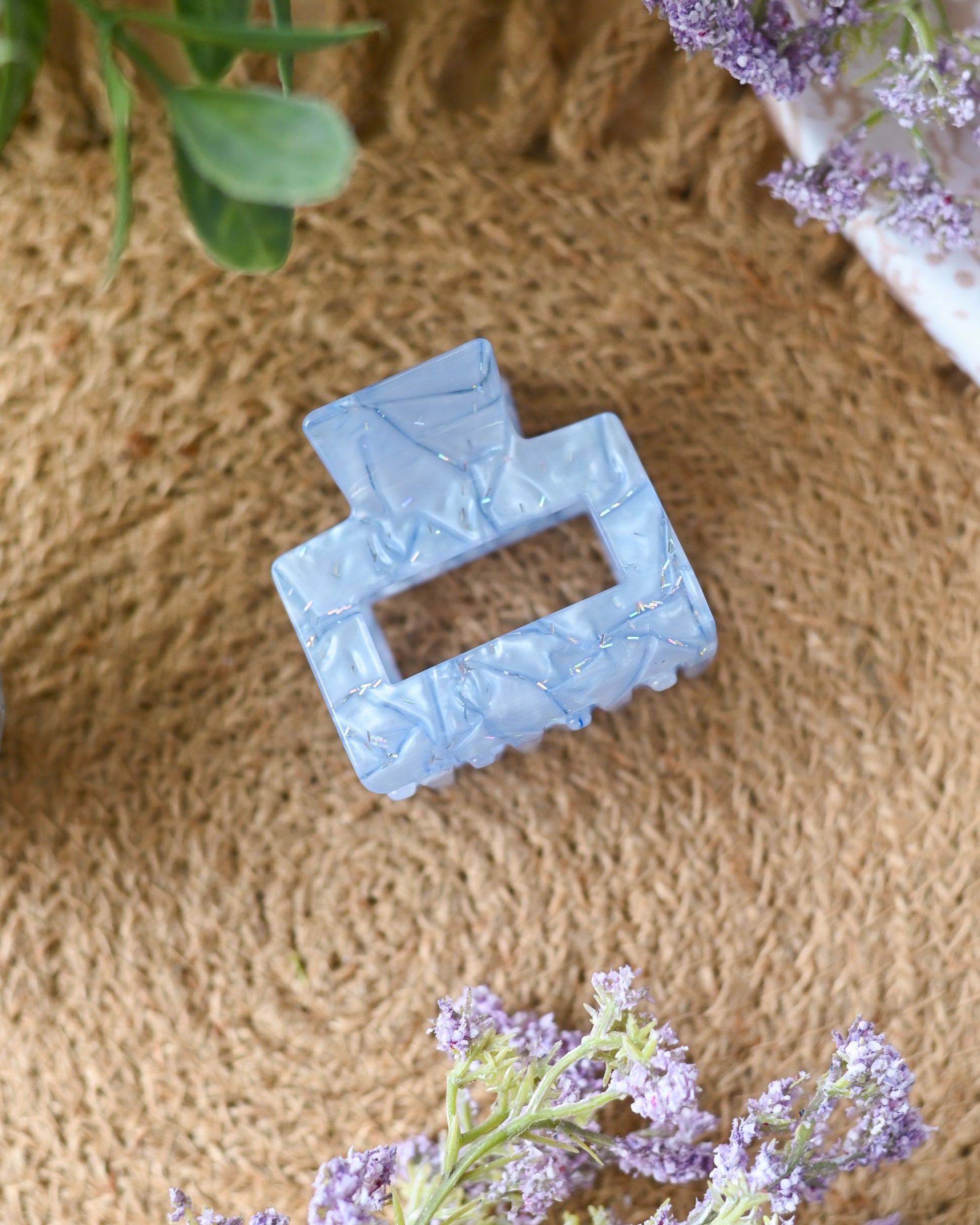 Add a touch of sass and style to your hair with our Lilac Marble Square Claw! This playful accessory features tinsel imbedded in the clip with a marble pattern and is perfect for medium and thick hair types. Made of durable acrylic material.