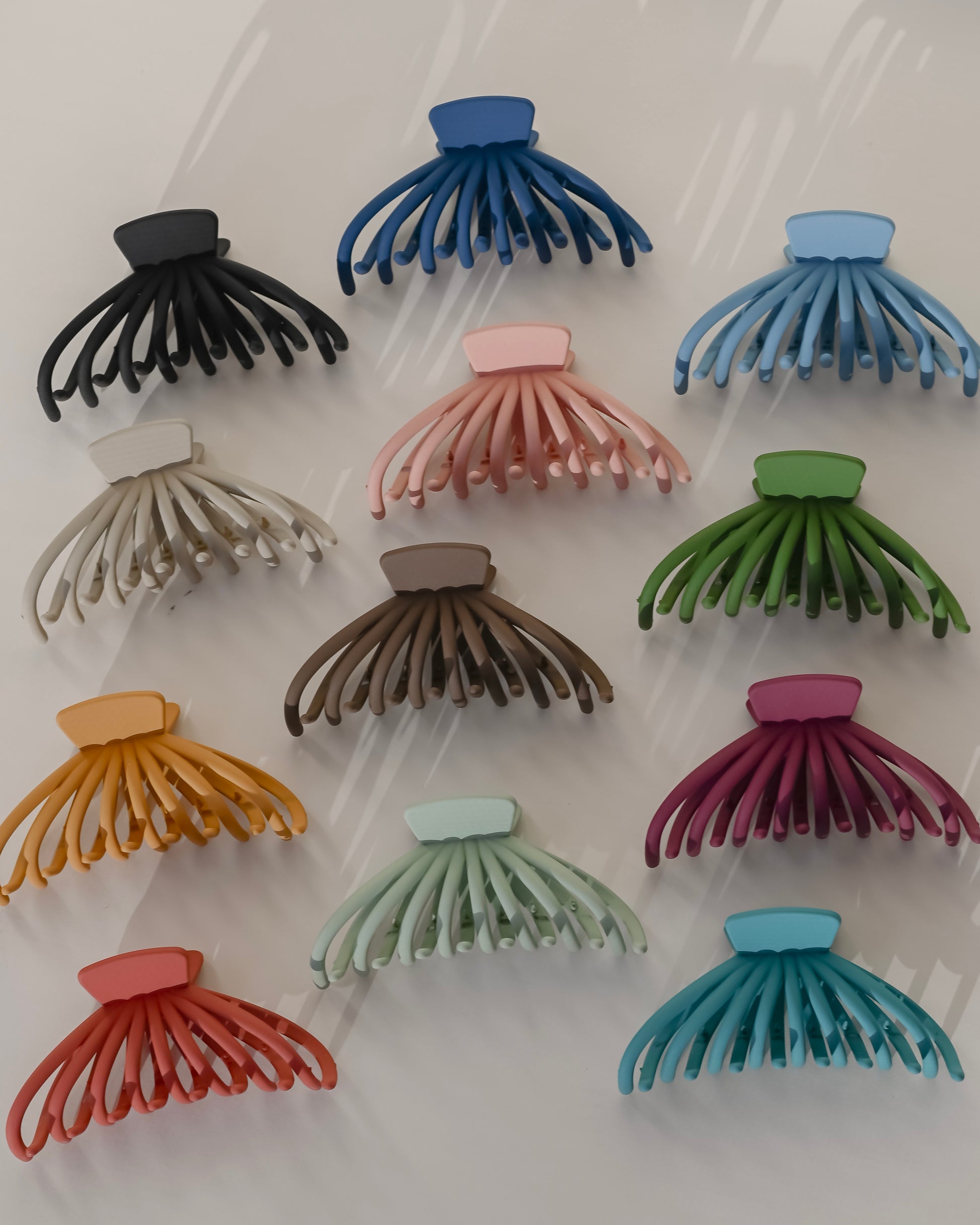 Say hello to Share Studio's custom colored Clutch Claws! Available in 12 matte colors, our Clutch Claws put a twist on your average claw clips, while still maintaining as strong of a grip as ever! Perfect for medium to thick hair.