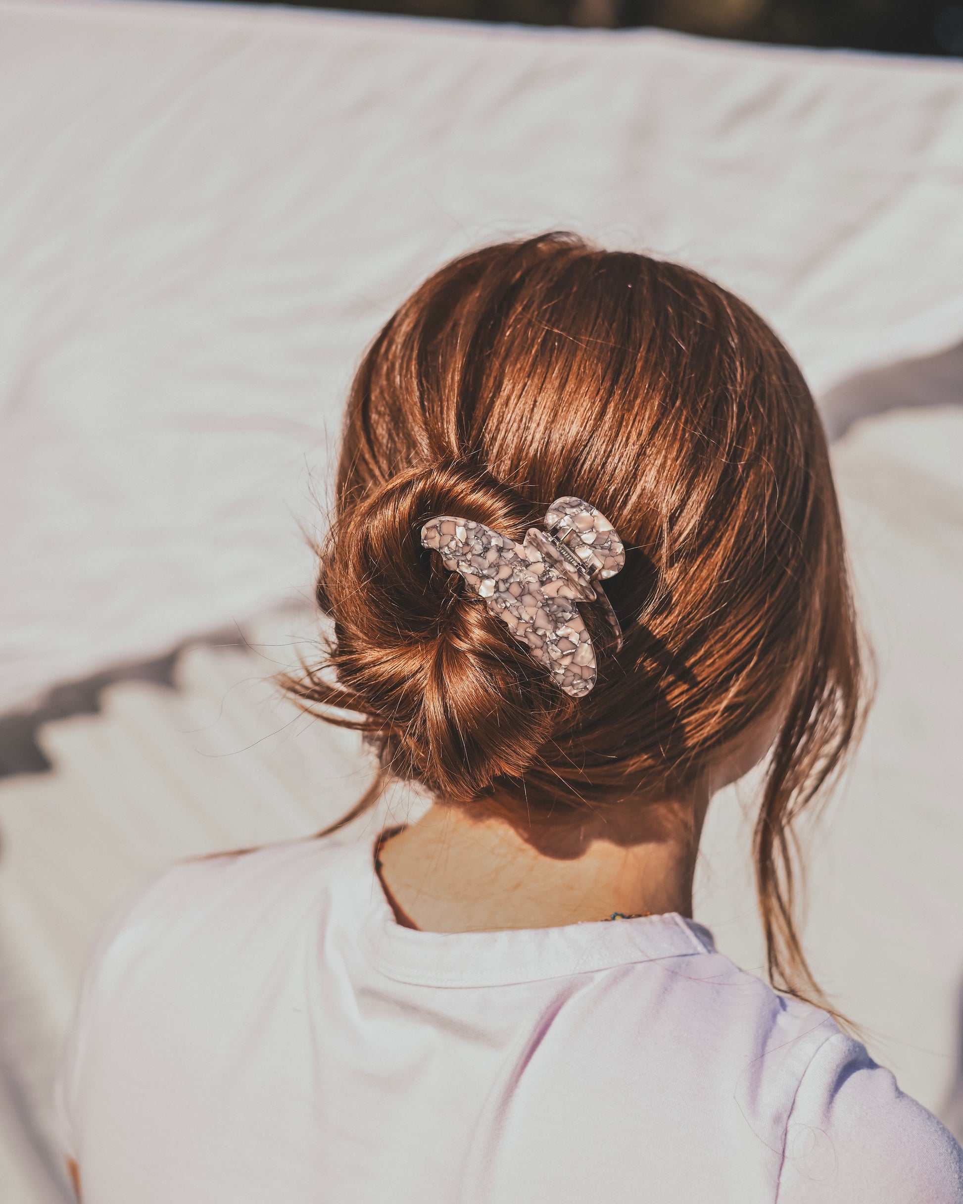 The most stunning midi claw has arrived, say hello to our Coco Beach Daily Claw! This claw has the perfect touch of a beach pink color mixed in with neutrals, making it a great addition to your collection and can be an accent piece for any outfit! This claw is not only adorable but also extremely reliable and eco-conscious. Made from cellulose acetate, this clip has a tremendous amount of flexibility and give making it nearly impossible to break. Not to mention, it's so much better for our lovely planet than plastic is! Get yours today, limited stock available!