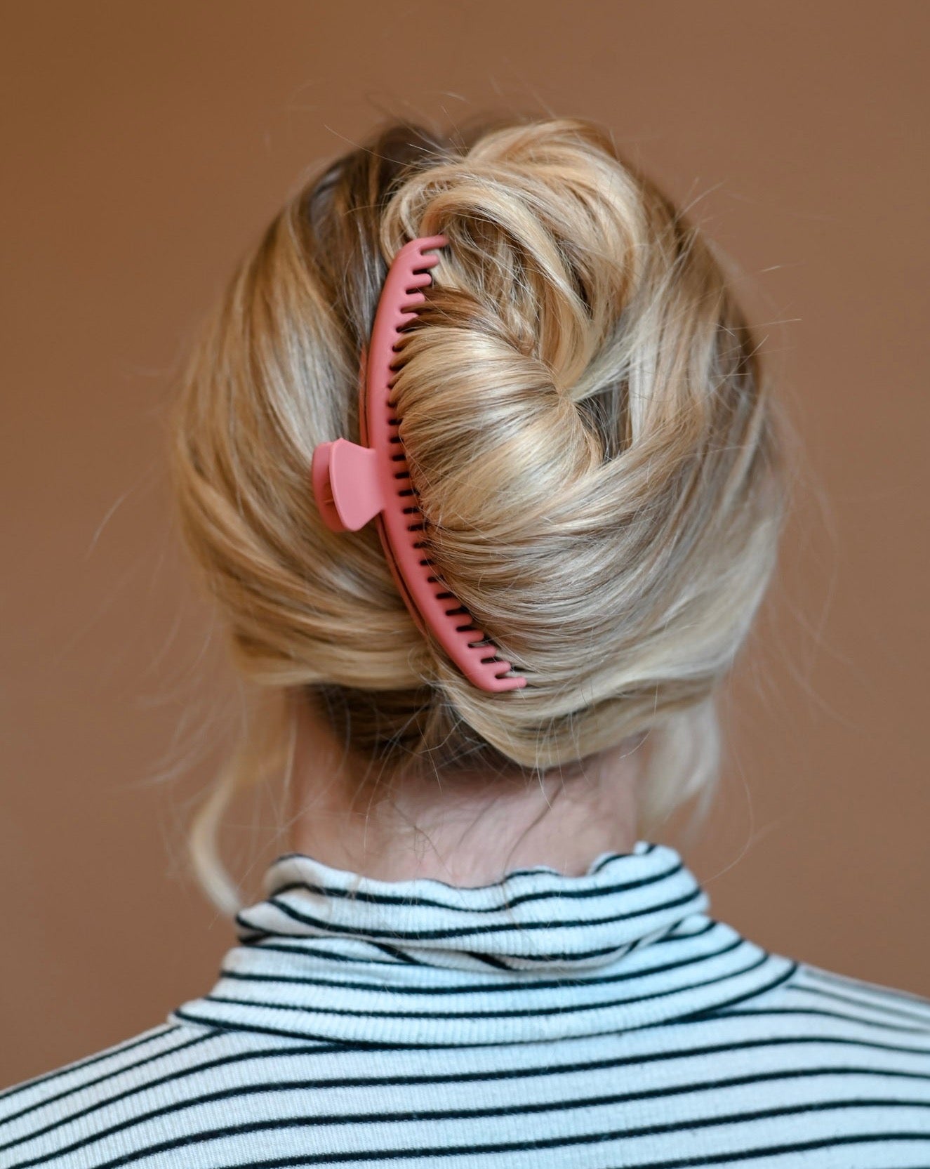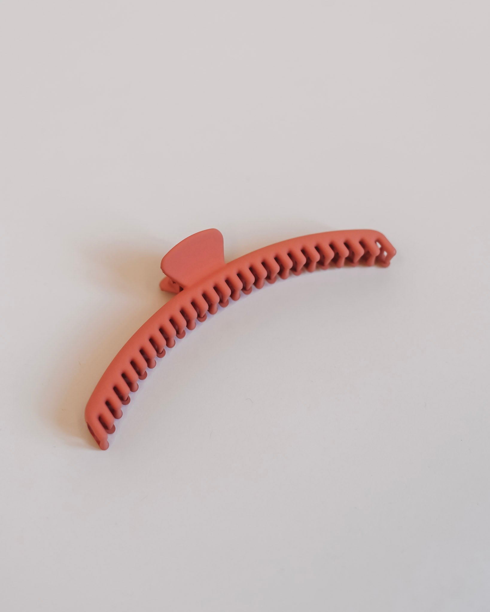 The rich coral matte color and texture of the clip gives it a chic and understated look that's perfect for both casual and formal settings. And with its ultra-strong grip, the Mega Hold Claw Clip will keep your hair securely in place all day long, no matter what your day brings.