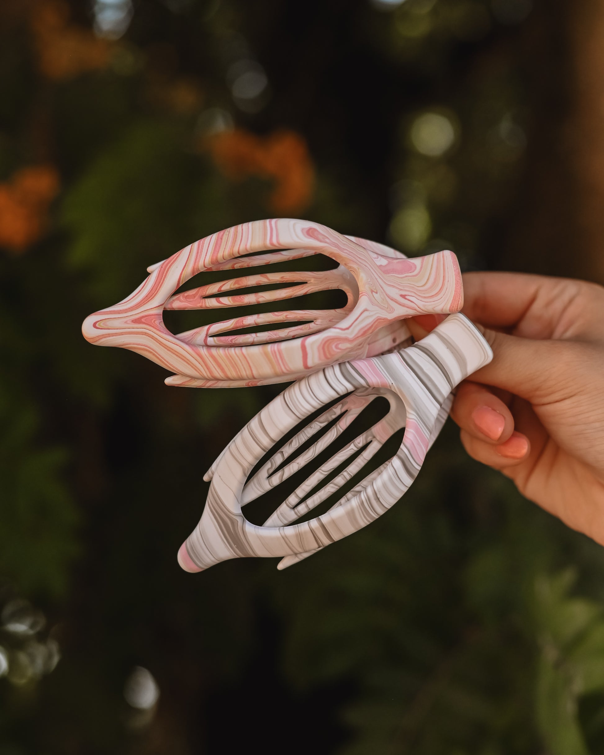 Meet your new everyday essential — the Lay Flat Wide Clip. Designed for comfort and effortless wear, this clip sits flat against your head, making it perfect for driving, lounging, or relaxing without discomfort. Its wide design keeps hair secure through daily activities while maintaining a sleek, minimal look. Works beautifully for all hair types — from thin to thick — and doubles as the perfect half-up option for longer or fuller hair.