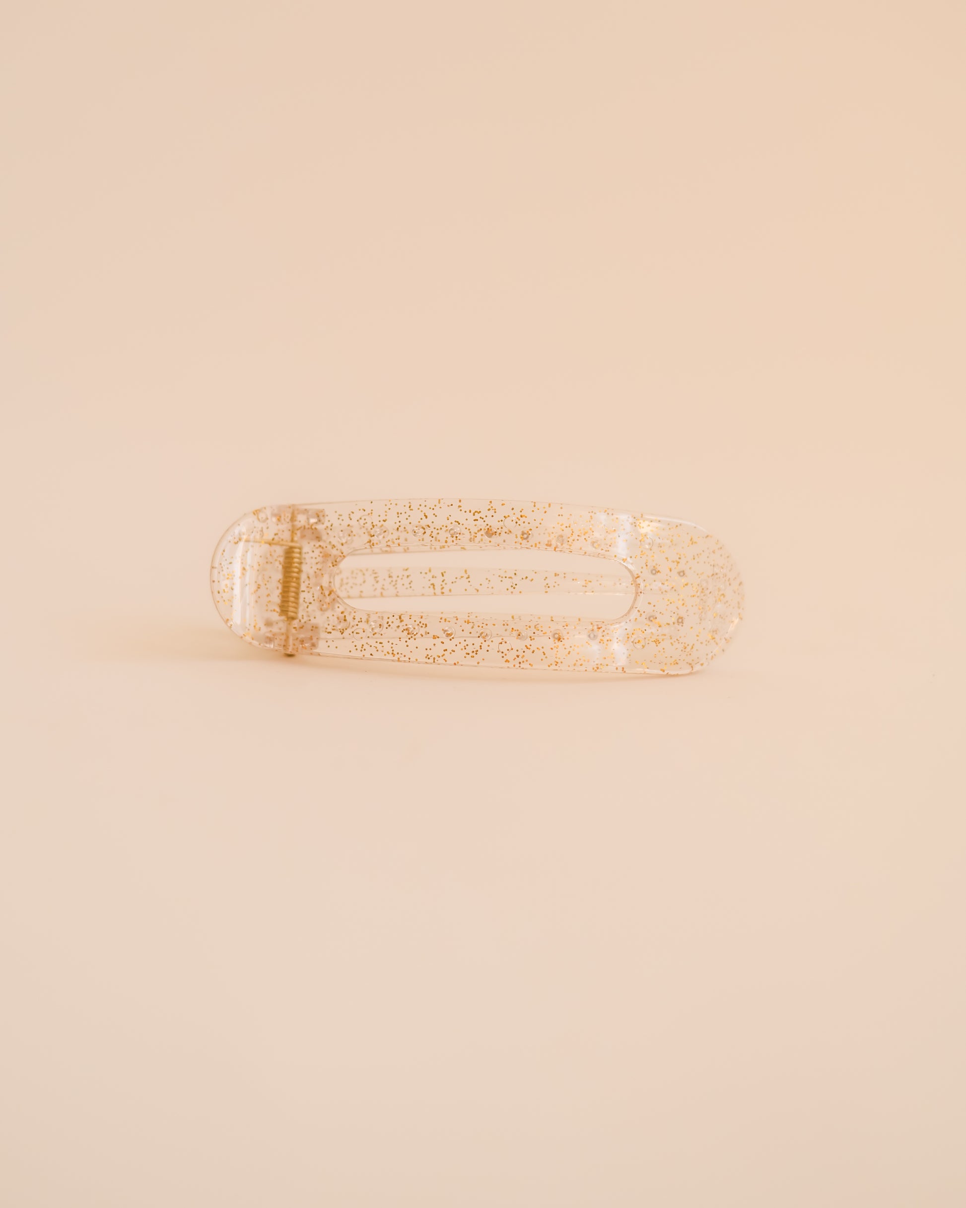 Our Golden Flakes Lay Flat Clip is the perfect mix of minimal and modern — a glossy finish with glitter inlay that pairs beautifully with any outfit. Designed with our signature lay flat shape for maximum comfort and all-day hold, it keeps your hair secure without snagging or slipping.