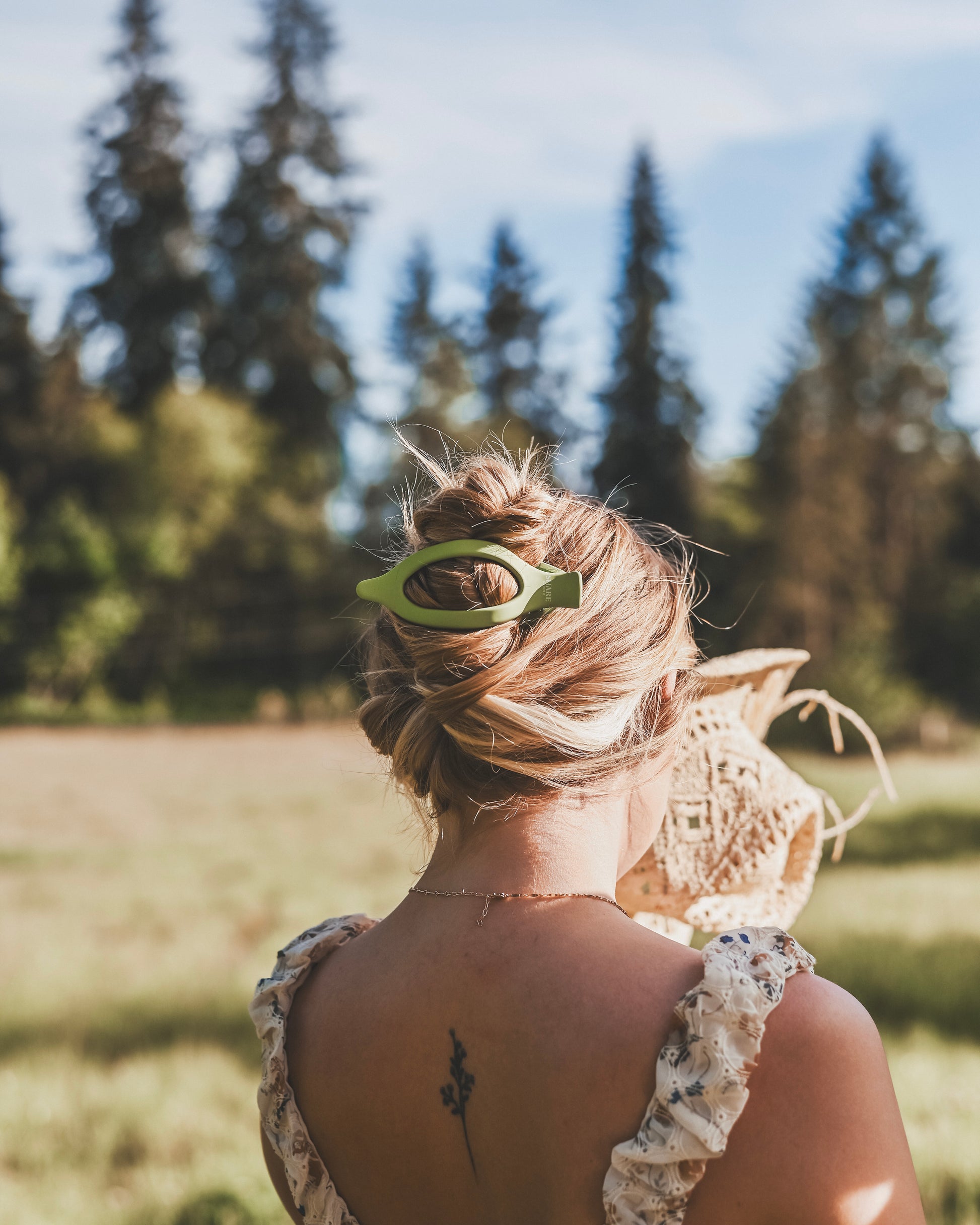 Meet your new everyday essential — the Lay Flat Wide Clip. Designed for comfort and effortless wear, this clip sits flat against your head, making it perfect for driving, lounging, or relaxing without discomfort. Its wide design keeps hair secure through daily activities while maintaining a sleek, minimal look. Works beautifully for all hair types — from thin to thick — and doubles as the perfect half-up option for longer or fuller hair.