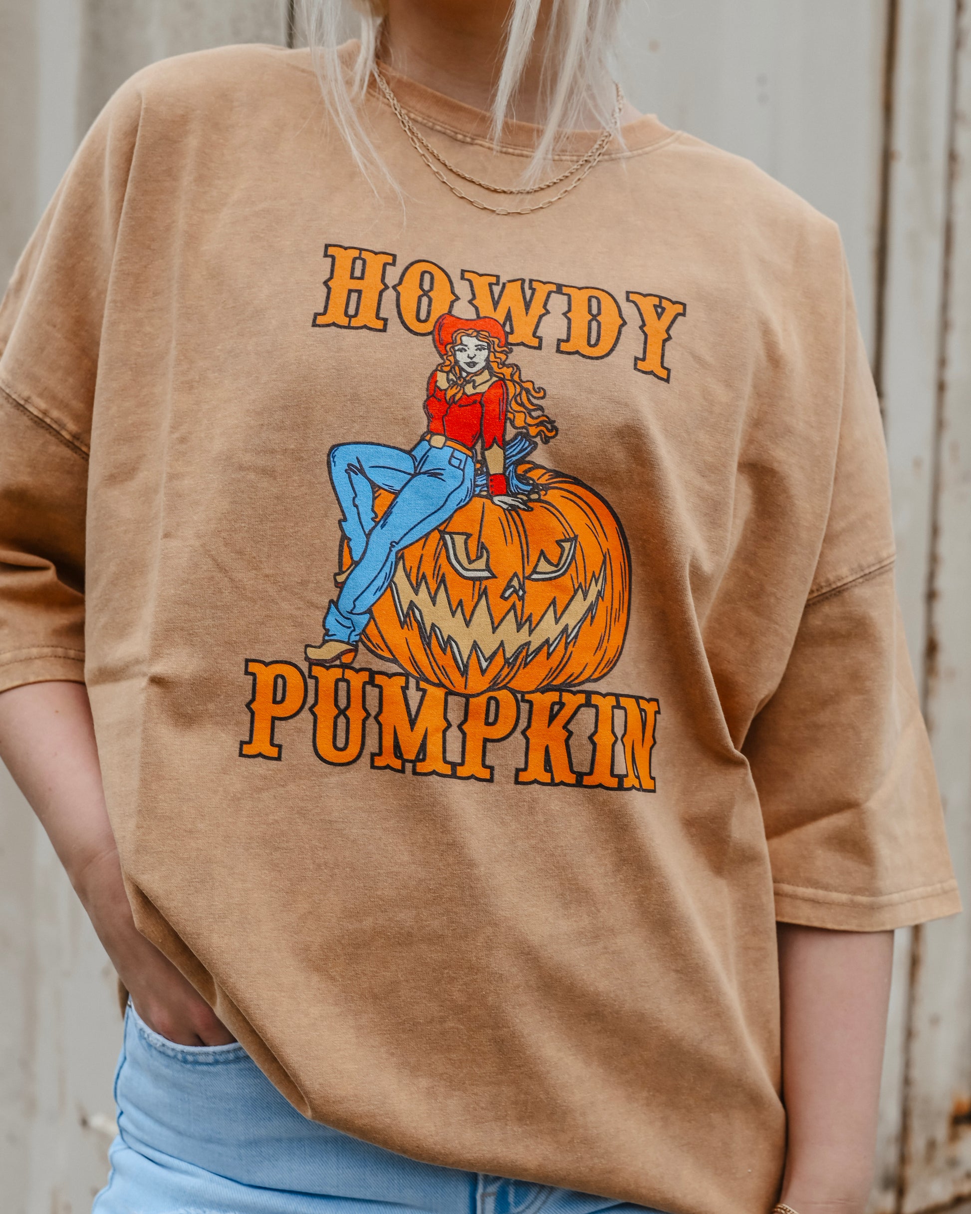 With a classic, vintage appearance and the "Howdy Pumpkin" graphic, this tee exudes timeless charm, making it the perfect choice for fall!