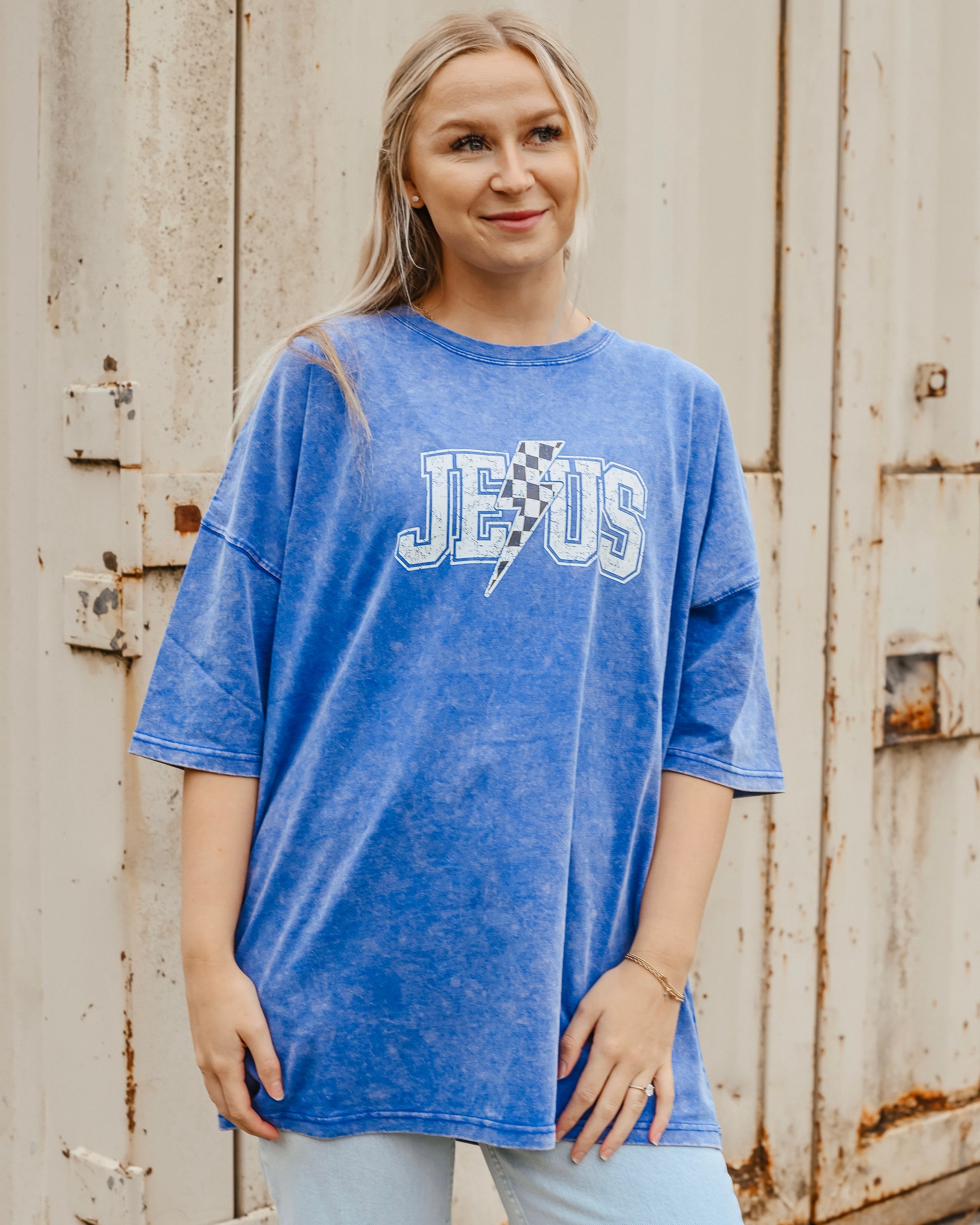Lightening Blue “Jesus” Oversized Tee // SHARE STUDIO BRAND
