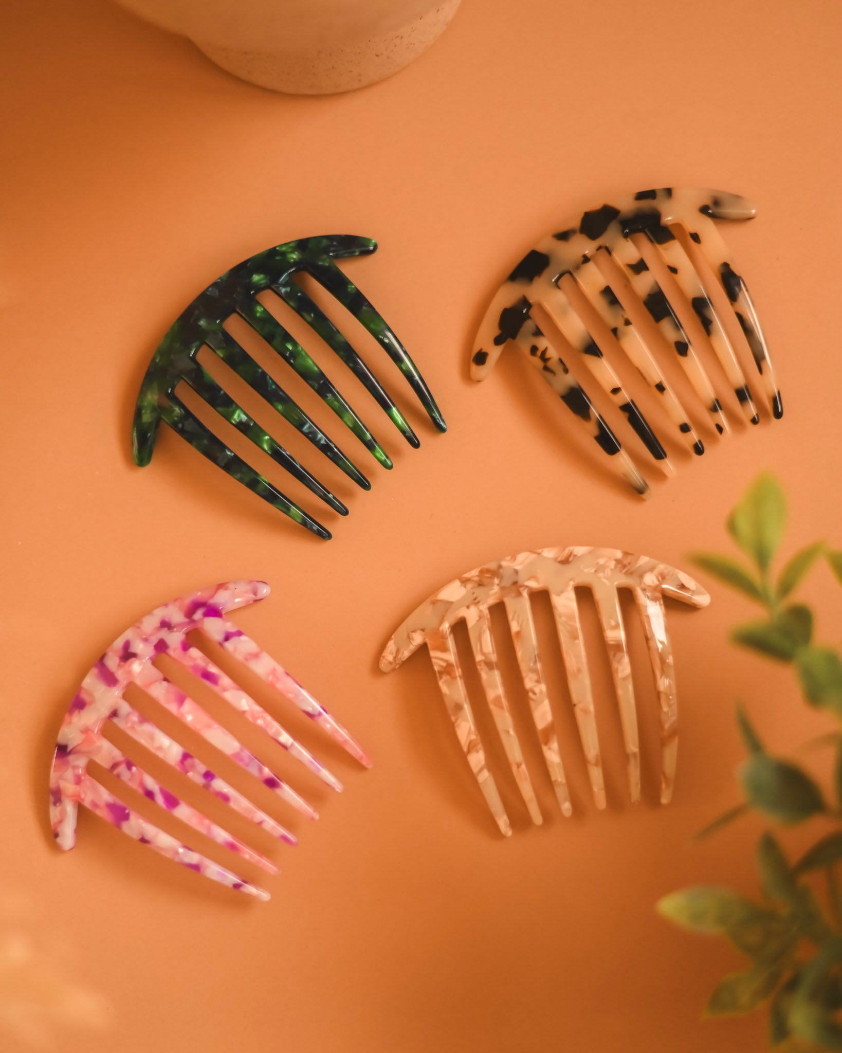 An old fashioned, traditional hair comb pin takes a modern twist! There's a reason these are making a come back and it's because they WORK! Any hair type, especially long hair, these are doing the job and getting all of your hair up all day long - with the exception of shoulder length or shorter. These are made from cellulose acetate, ensuring long lasting durability and is simultaneously eco-friendly unlike your traditional plastic hair accessories.