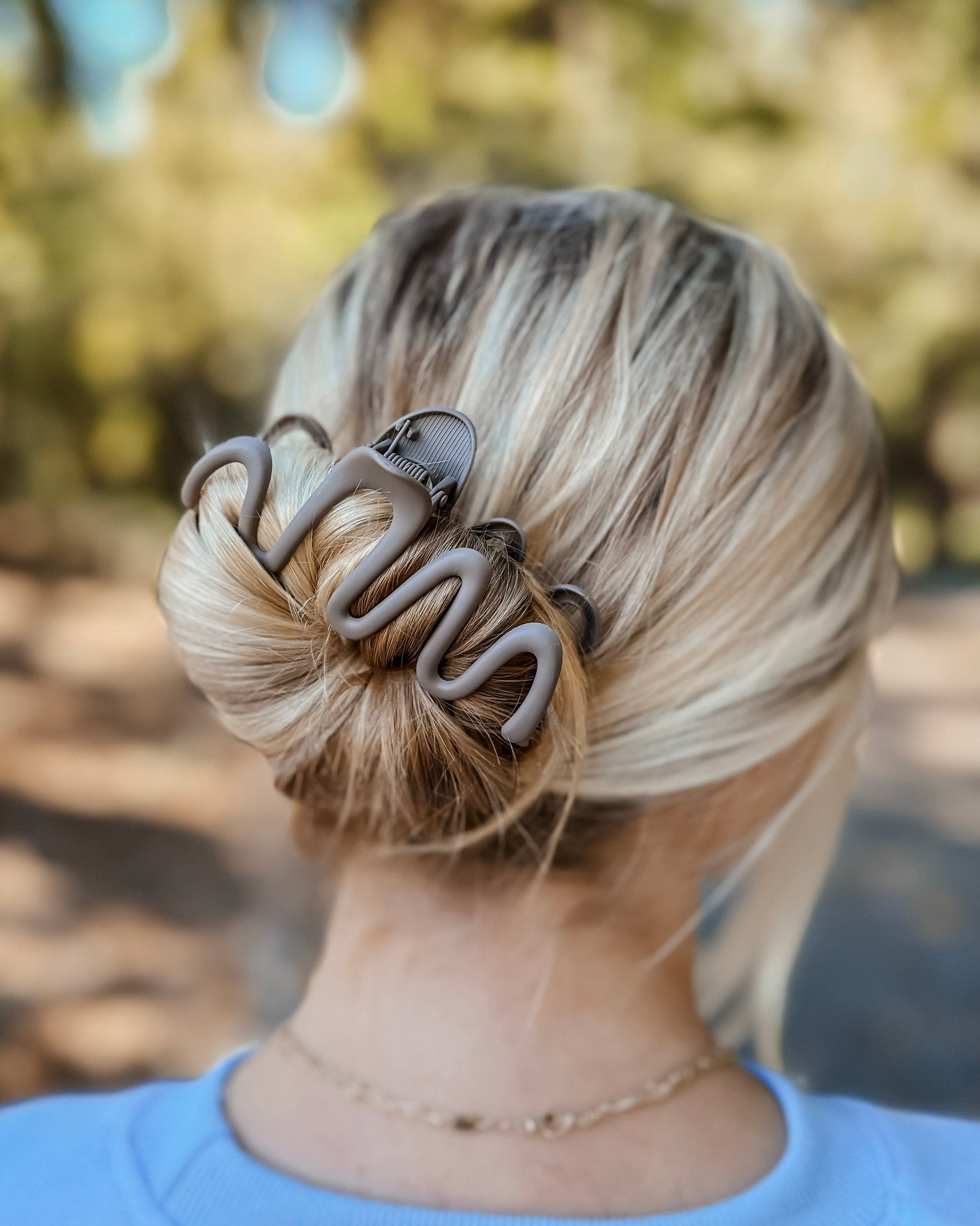 The unique squiggle design adds a touch of whimsy to your hairdo, making it a versatile choice for various hair textures. Whether you have medium hair and want an elegant all-up look or possess thick, textured, or long locks and desire a chic half-up, half-down hairstyle, our Metal Squiggle Hair Claw Clip has got you covered.