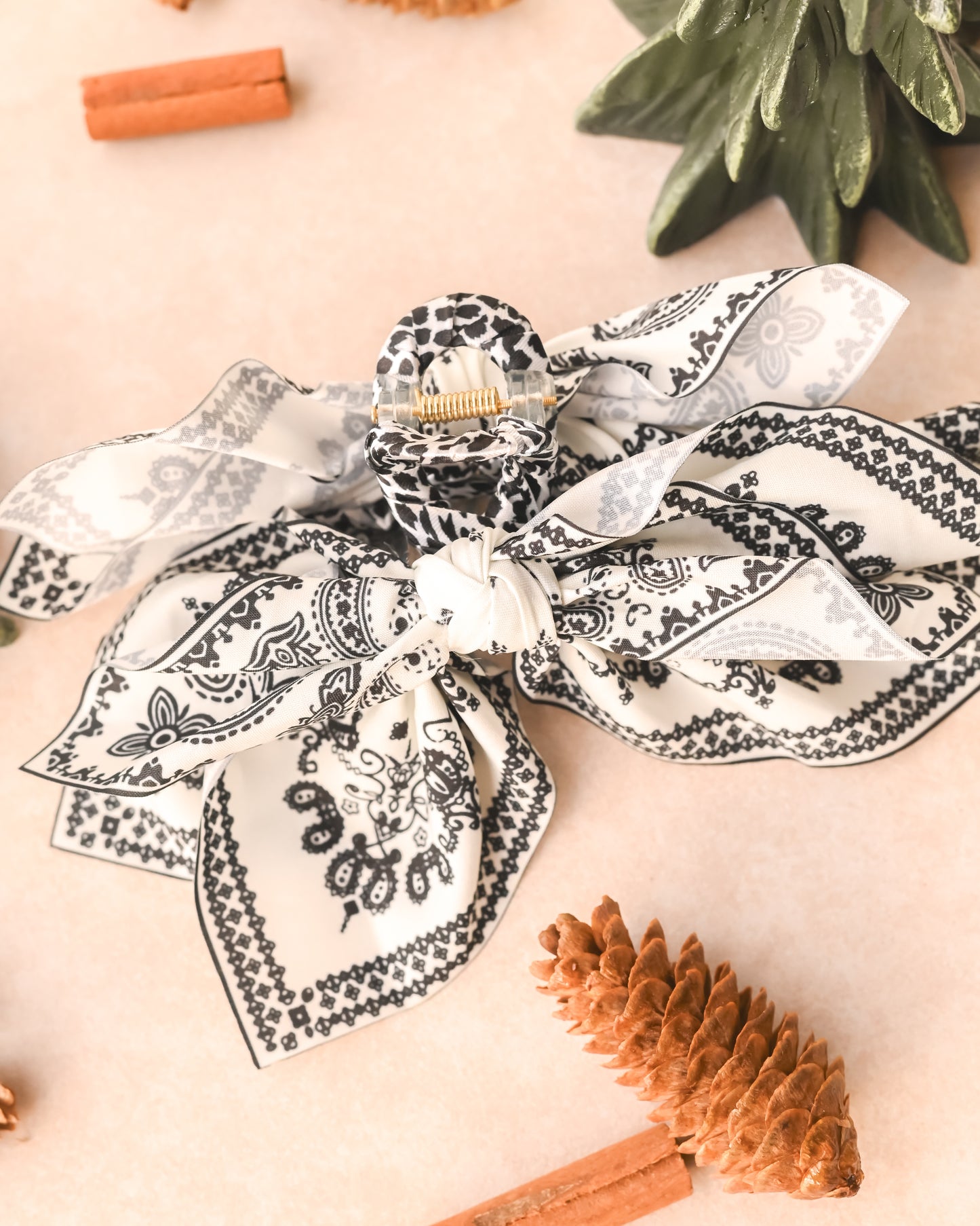 Made with a stylish fabric paisley print bow on a secure claw clip, this accessory is both functional and fashionable.