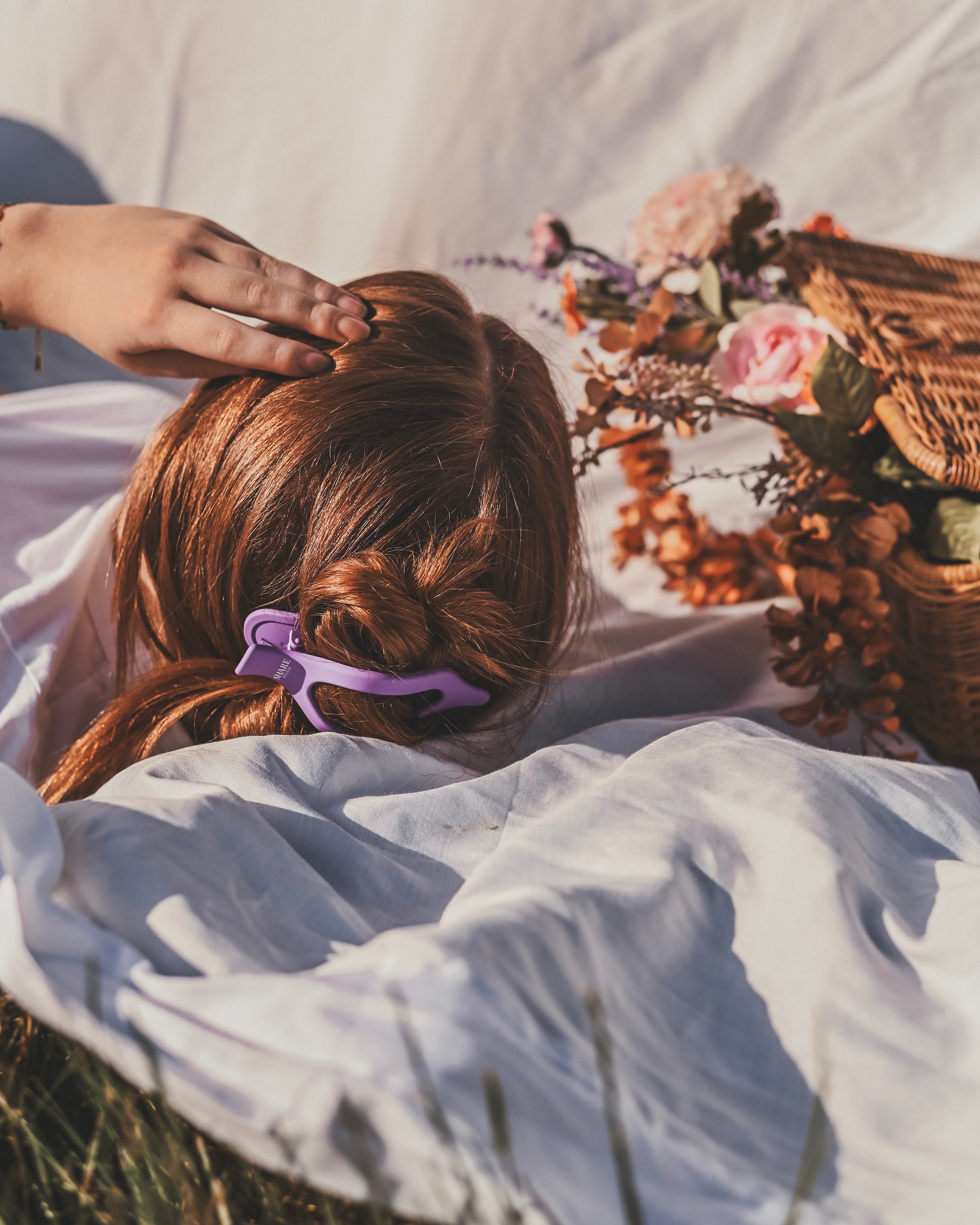 Meet your new everyday essential — the Lay Flat Wide Clip. Designed for comfort and effortless wear, this clip sits flat against your head, making it perfect for driving, lounging, or relaxing without discomfort. Its wide design keeps hair secure through daily activities while maintaining a sleek, minimal look. Works beautifully for all hair types — from thin to thick — and doubles as the perfect half-up option for longer or fuller hair.