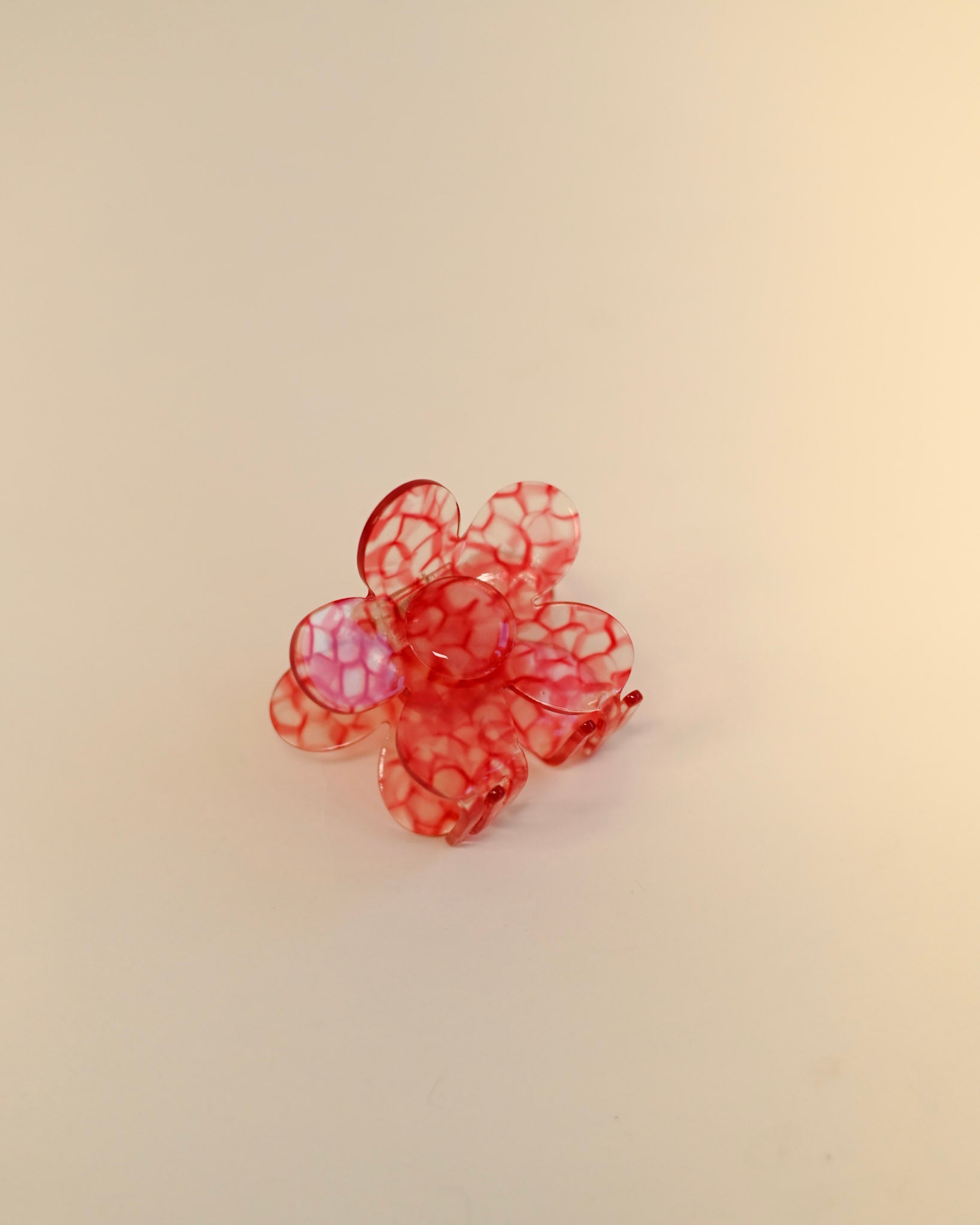 The traditional flower claw shape with a unique translucent pattern and a touch of red! The Red Translucent Daisy claw is made from cellulose acetate - making this claw much more durable than your traditional plastic clip. This claw clip is great for medium hair or for half-up-half-down styling for those with thicker hair!