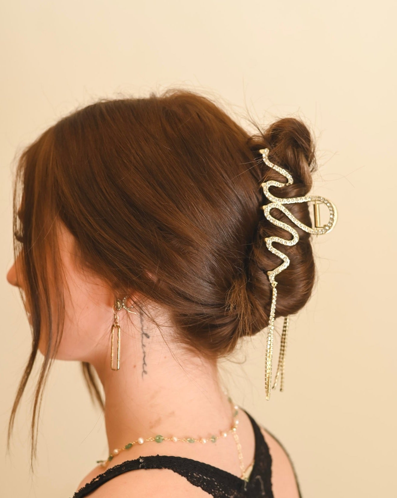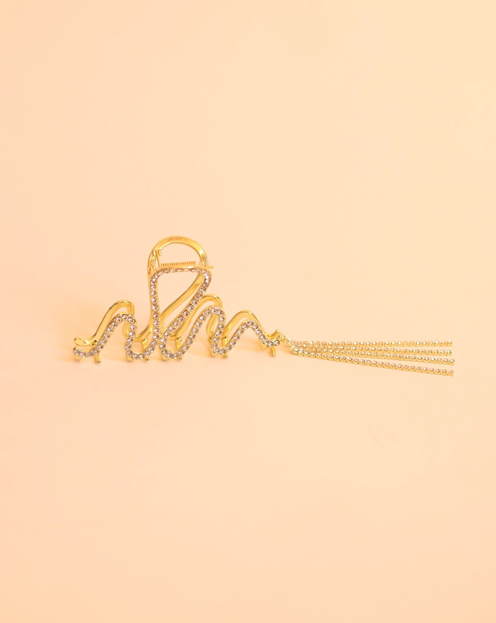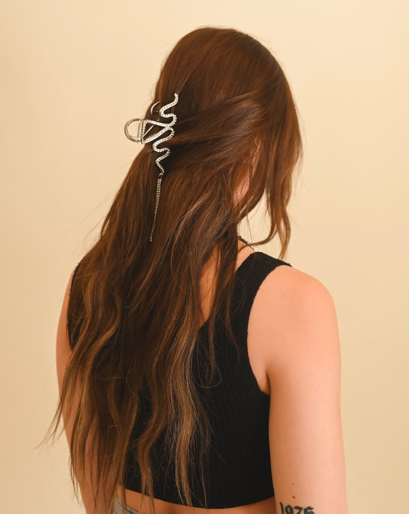 Introducing our exquisite Snake hair clip in gold and silver, a dazzling accessory that exudes elegance and style. Crafted in a luxurious gold hue and adorned with mesmerizing rhinestones, this clip is truly a work of art. Its unique design resembles a snake-like figure with captivating tail pieces, adding a touch of intrigue and glamour to any hairstyle.