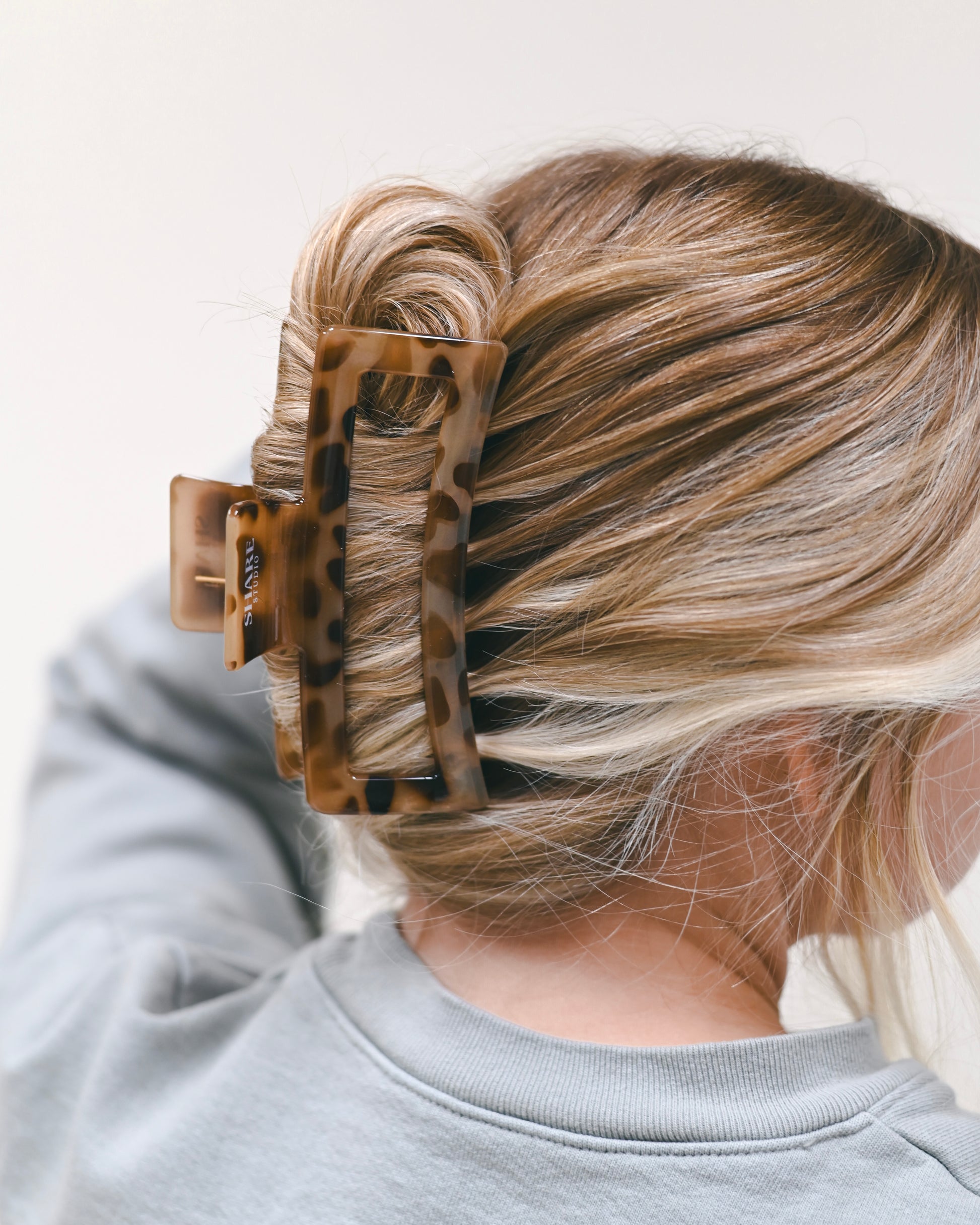Introducing our best-selling Jumbo Claw in our BRAND NEW Tortoise print! A beautiful, neutral statement piece for all hair colors. Measuring 5 inches long and built with an ultra-strong spring, this clip is designed for and loved by all of our thick-hair girlies. Grab her now, she won't last long!