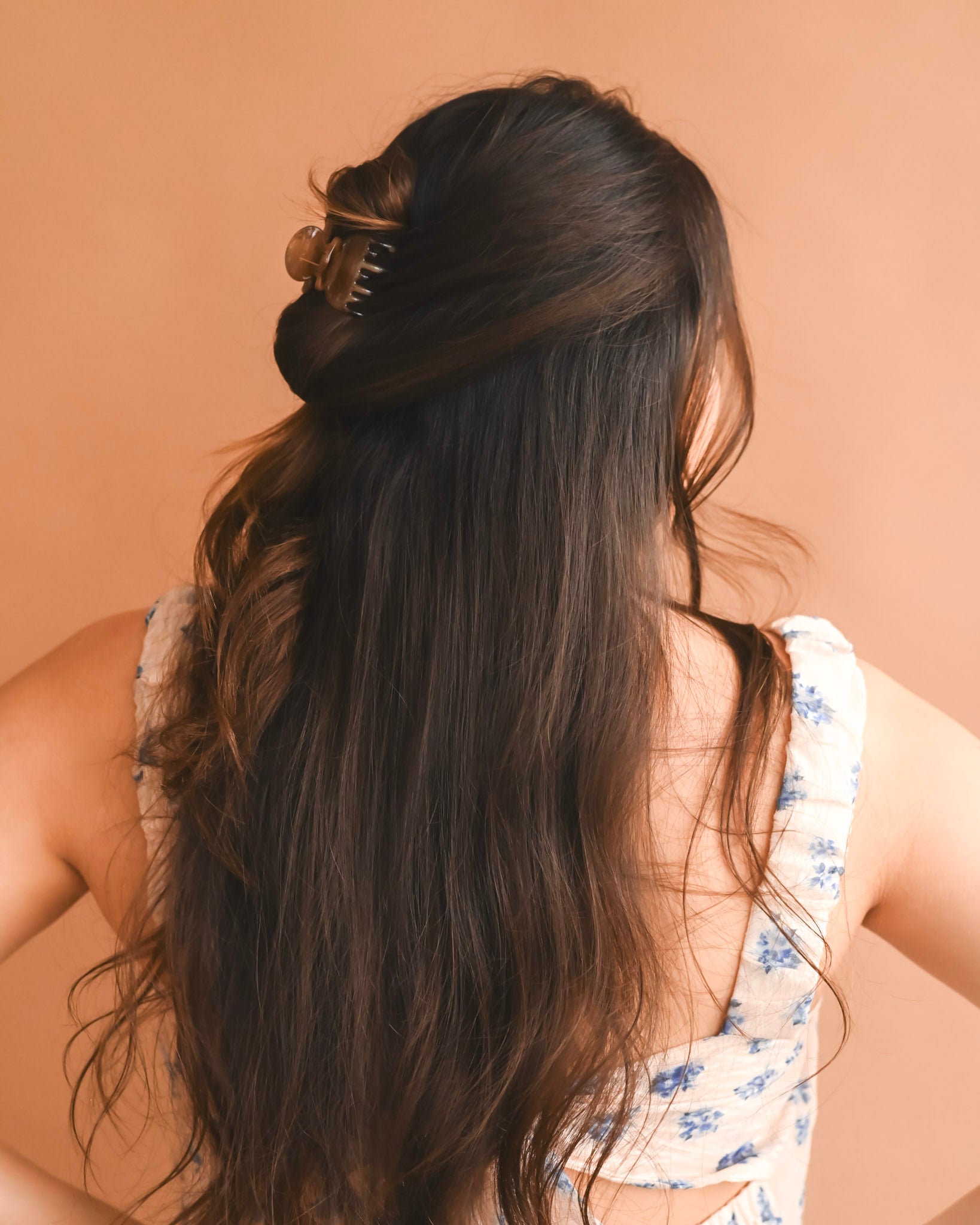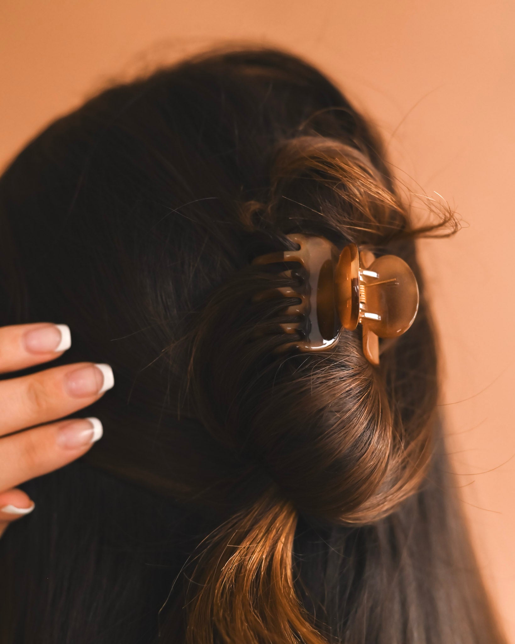 Made with high-quality materials, this hair claw clip is built to last. Its glossy texture not only gives it a modern and sleek look, but it also adds a touch of eye-catching shine. Our tortoise color and pattern adds a touch of character while still remaining neutral and versatile for any look.