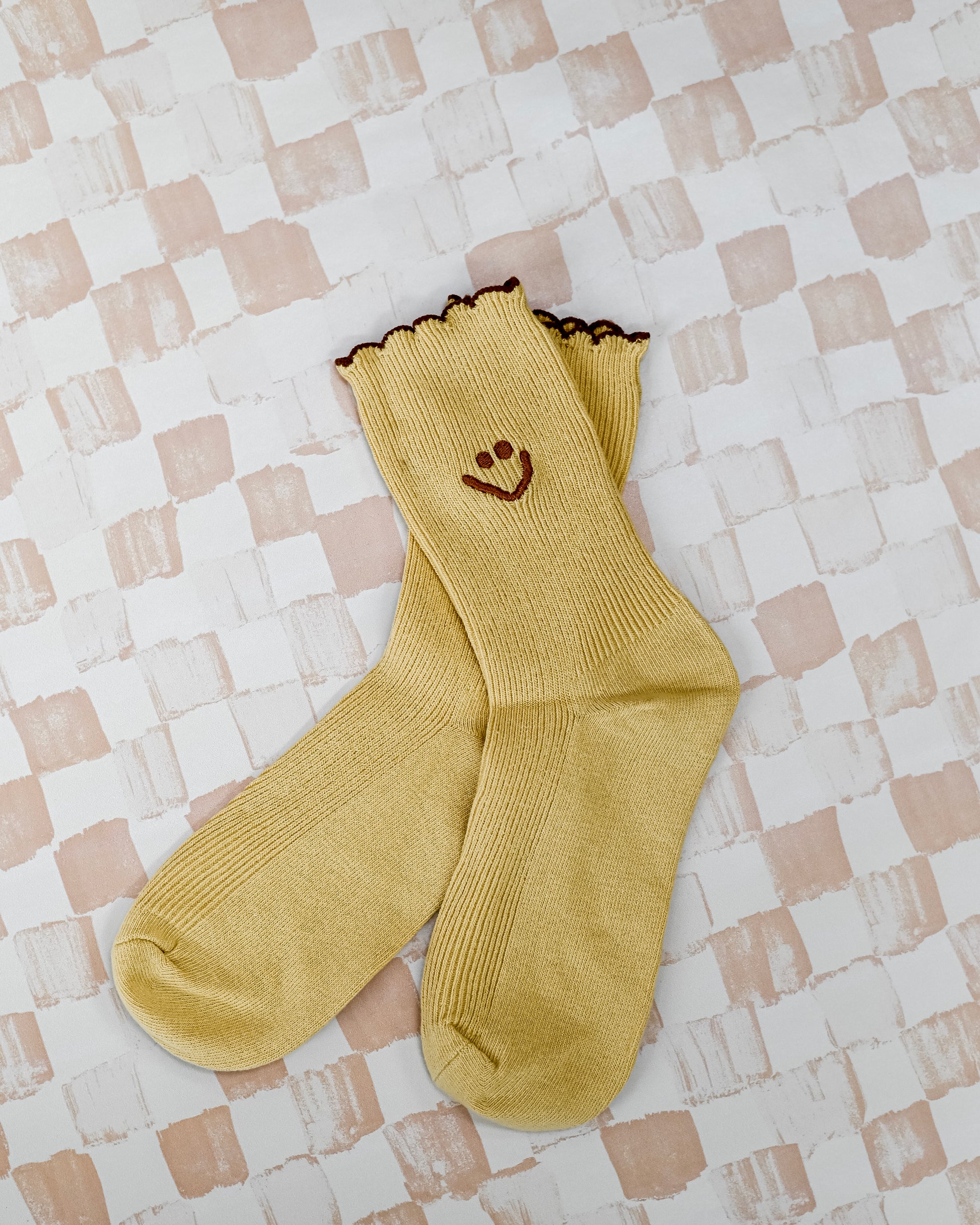 Say hello to your new favorite pair of socks! These adorable, vintage-inspired crew socks add a perfect basic touch to your outfit and will have everyone asking where you got them from! Our Embroidered Ruffle Smiley Socks have ruffled fringe on the top and are ultra stretchy and breathable, never straying from comfort. Get yours today in seven perfect colors!