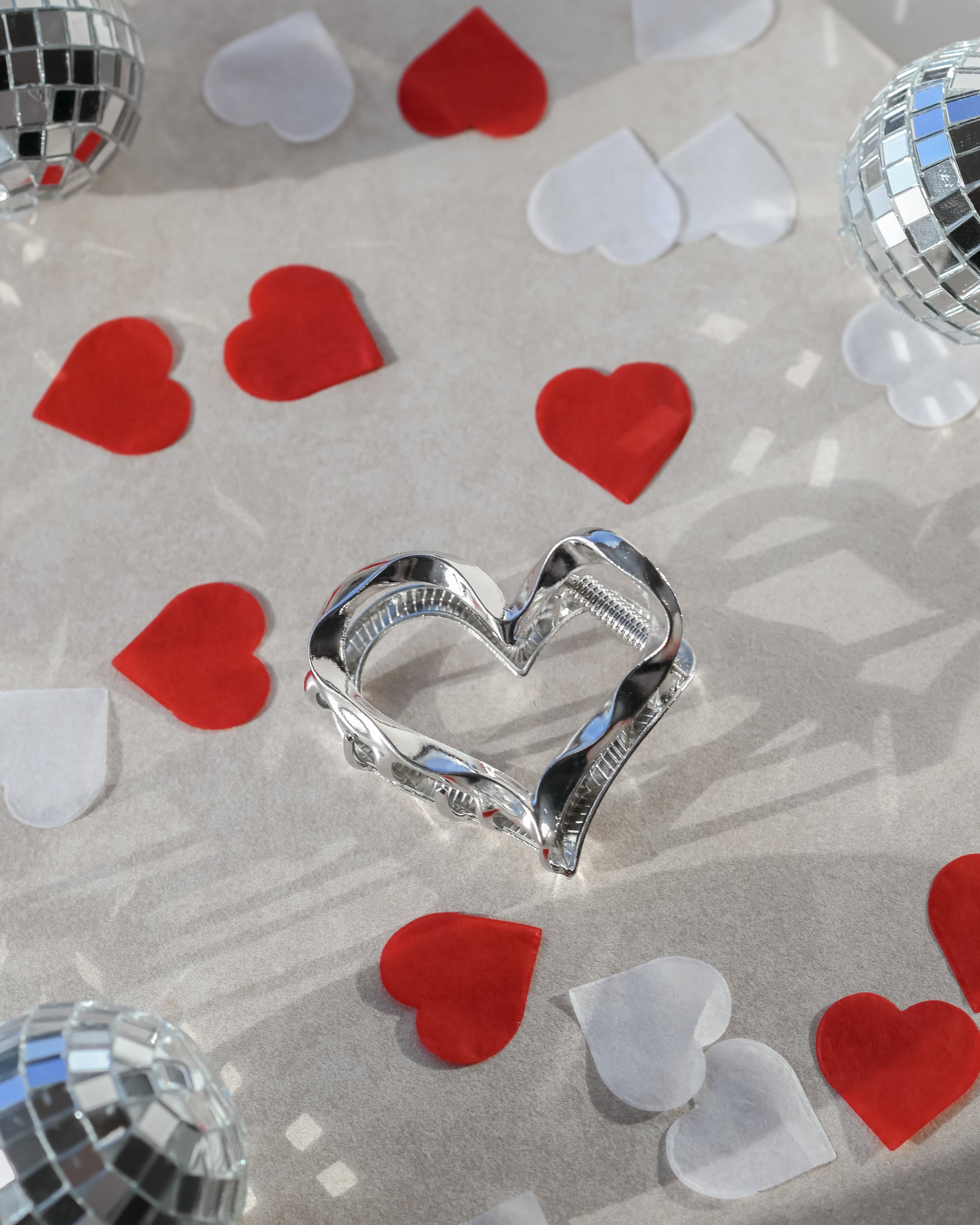 Introducing our Hammered Heart Metal Claw - the perfect accessory for your hairdo! Made from high-quality metal alloy, this midi-sized claw clip features a twisted heart shape that adds a touch of elegance and fun to any hairstyle. Available in both silver and gold.