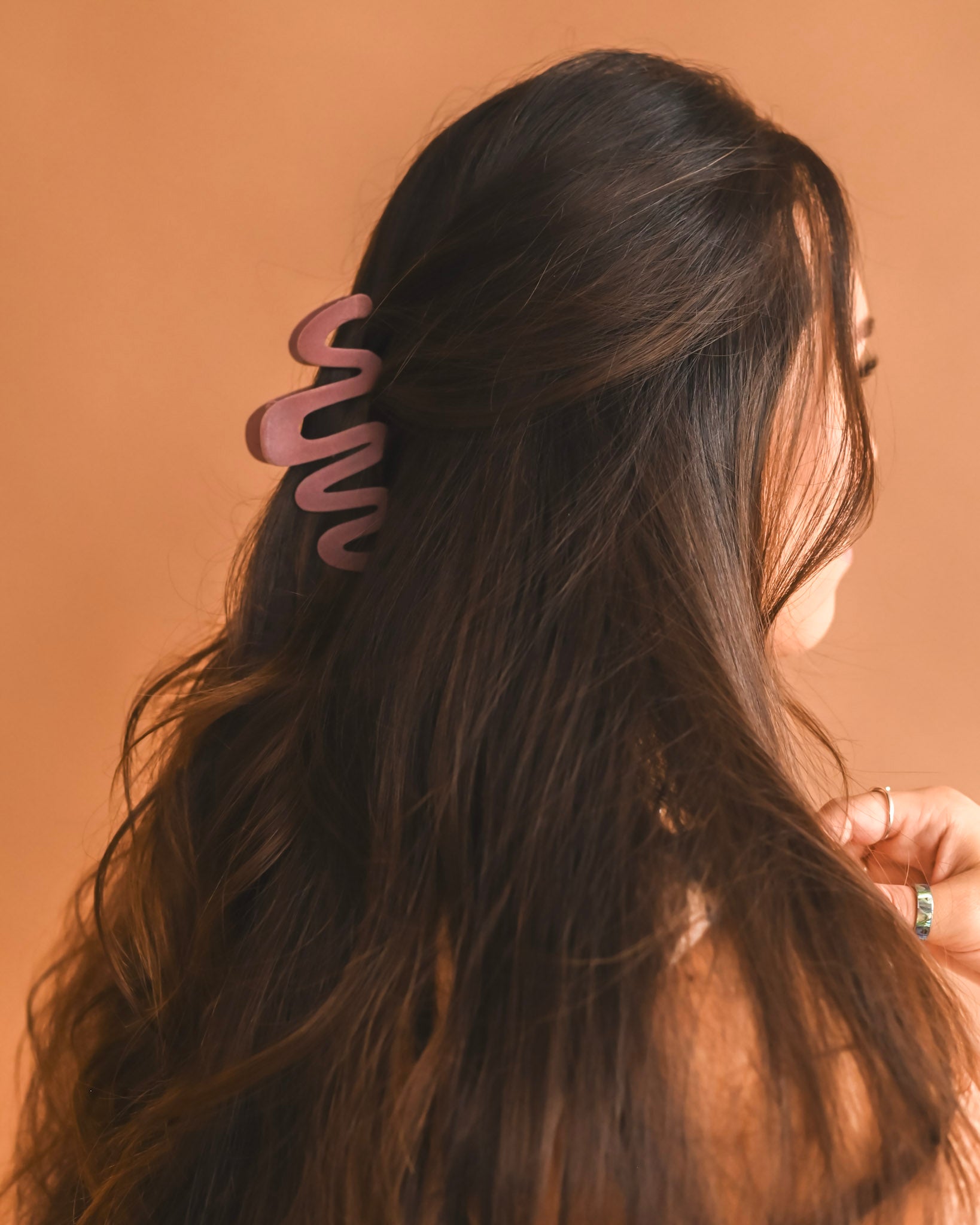 Soft to the touch yet strong in hold, approximately 4 inches in length, this claw blends playful shape with elevated texture. Designed for medium thickness hair it’s perfect for everyday styles.